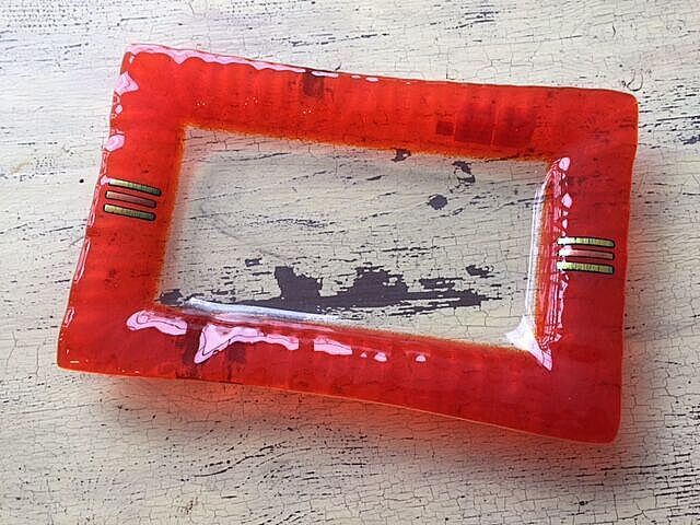 Semi Formal 9×14 inch server. Available in all colours shown on the chart and accented with complementary dichroic glass.