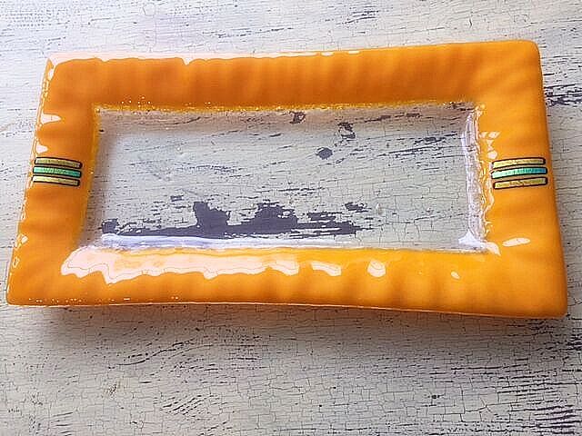 Semi Formal 9×17 inch platter.  Available in all colours shown on the chart and accented with complementary dichroic glass.